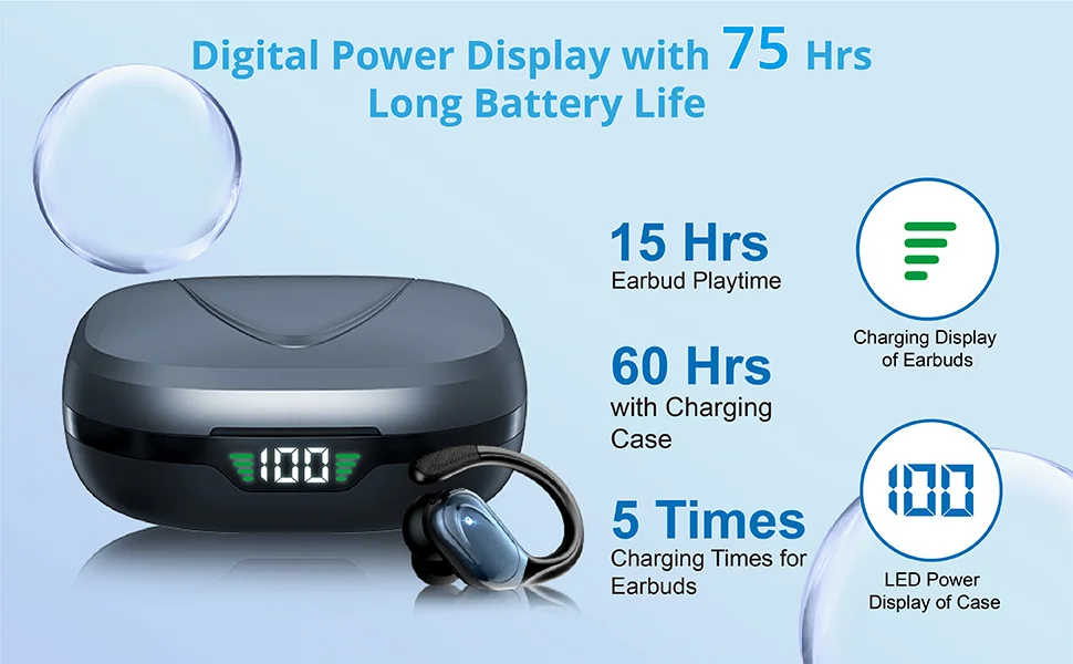 【Upgraded 80H Playtime & LED Power Display】- BX17 upgraded Bluetooth earbuds with a longer battery charging case, it has 12-15 hrs more playtime than BX17 1st generation. Up to 75 hrs of total listening time in turn, one earbud can be used for 12-15 hours on one charge. The case can provide extra 8 times the full charge for earbuds. The ear buds wireless bluetooth earbuds with a dual digital power display case, easy to know the remaining power in real-time while opening or closing the case.