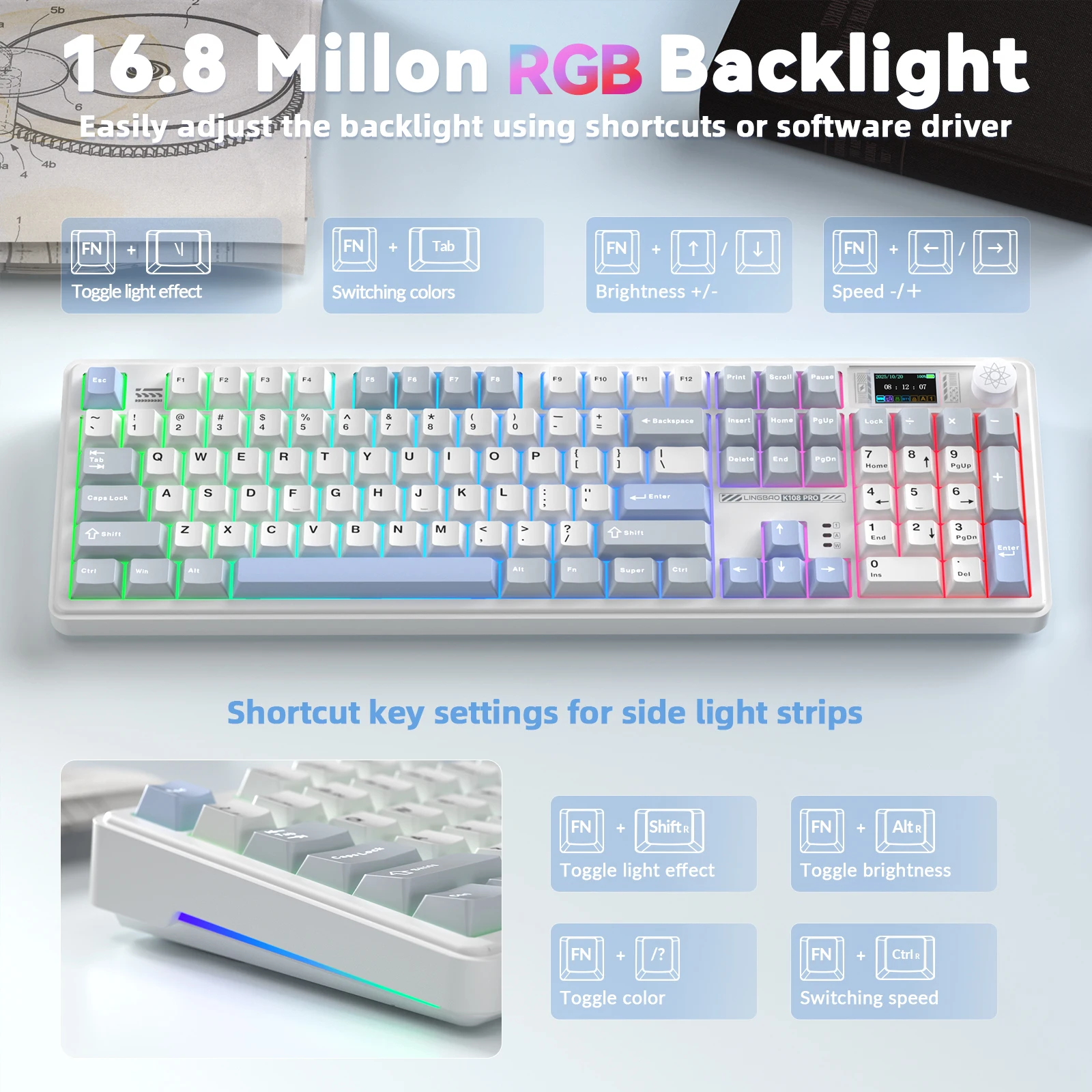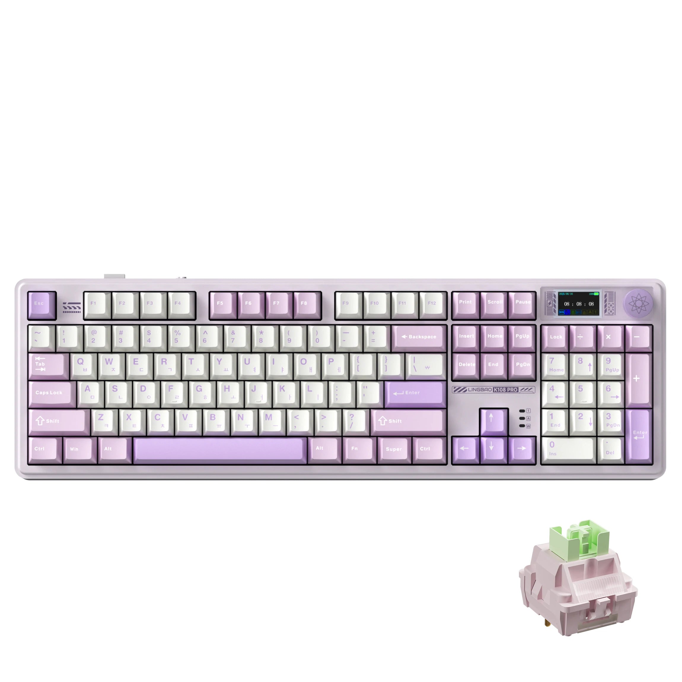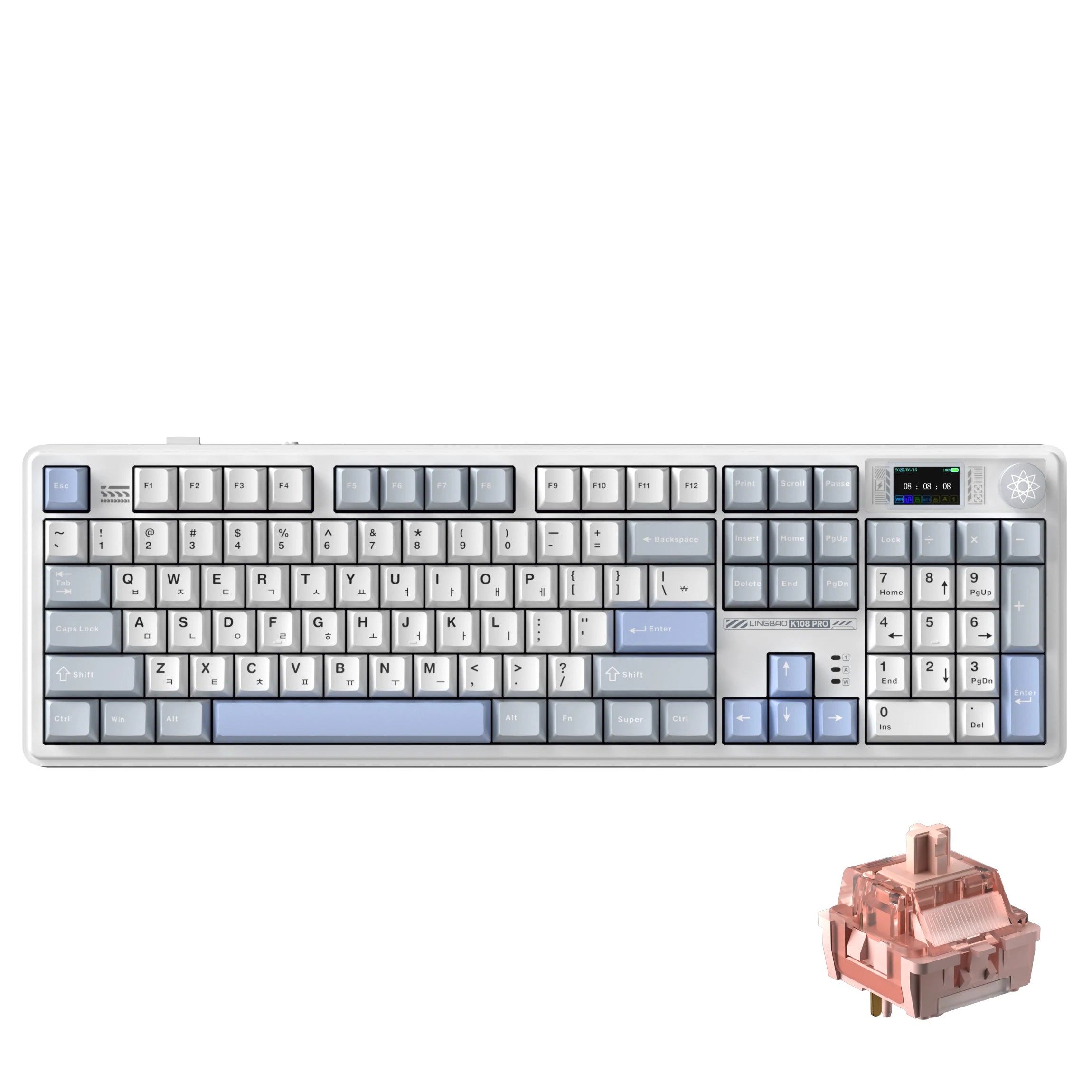 LINGBAO K108pro Mechanical Keyboard Tri-mode Korean Letters Macaron Color PBT Keycap 10000mAh Large Battery for Computers for PC
