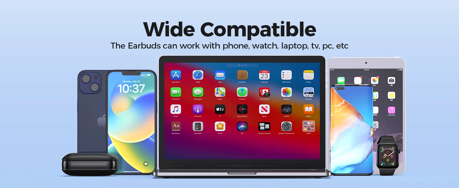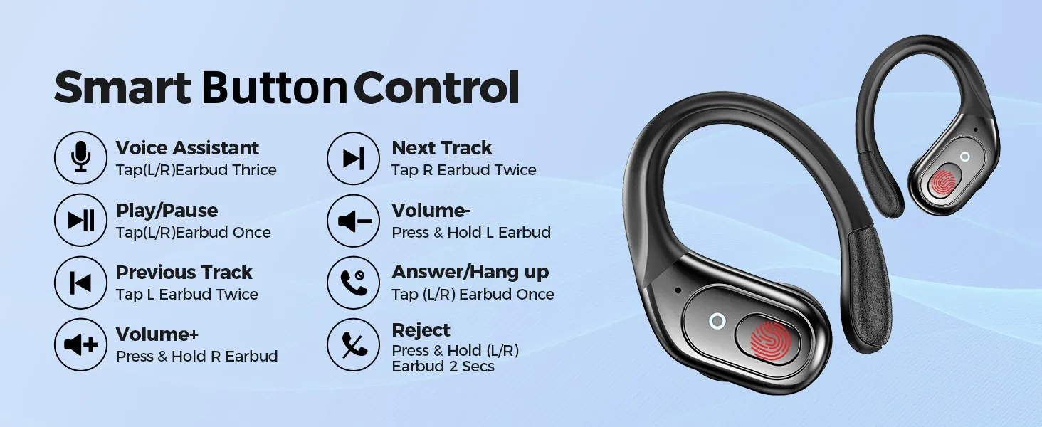 One Button Control & Auto On/Connect: Manage your music, adjust volume, and answer calls effortlessly with the wireless headphones' one-button control. Enjoy hassle-free control right at your fingertips. Over-ear earbuds automatically power on and connect to your device when taken out of the charging case. Seamlessly pair and start enjoying your favorite content instantly. They are compatible with most Bluetooth-enabled devices, including smartphones, TVs, computers, laptops, and smartwatches.