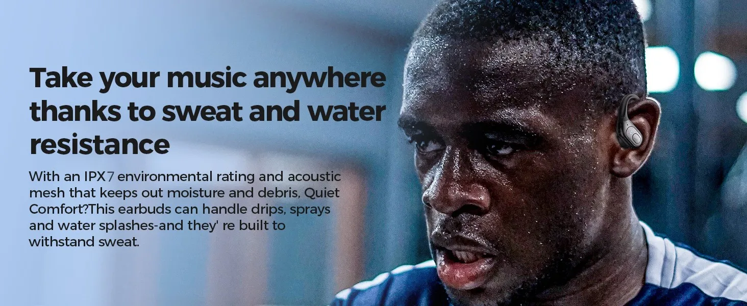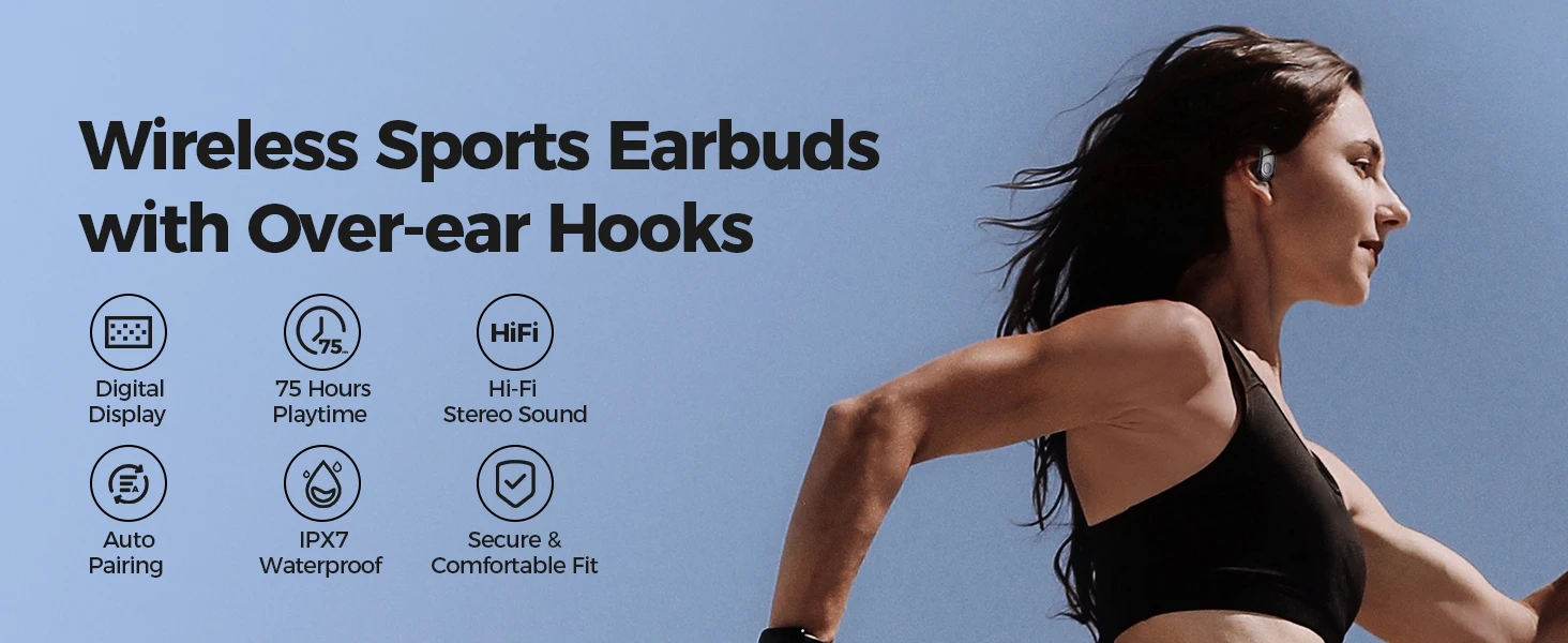 Ergonomic Design for Sports:Unshakable and comfortable fit ear hooks and ergonomic shape make the wireless earbuds stay firmly in position with no pain while sports. Comes with 3 different sized eartips that fit snugly and comfy in the ears. The wireless earbuds will never fall off even do strenuous endurance training. Featured with its IPX7 coating, our wireless earphones are built for any lifestyle. Go ahead and wear them running in the rain, working out at the gym, cycling, or hiking.