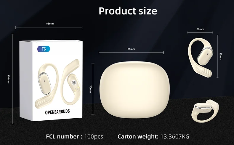 【Portable Case】The Open Ear Earbuds charging case is compact and convenient, featuring a pocket-sized design that allows easy storage of the headphones in your pocket, making it suitable for everyday use in various scenarios.