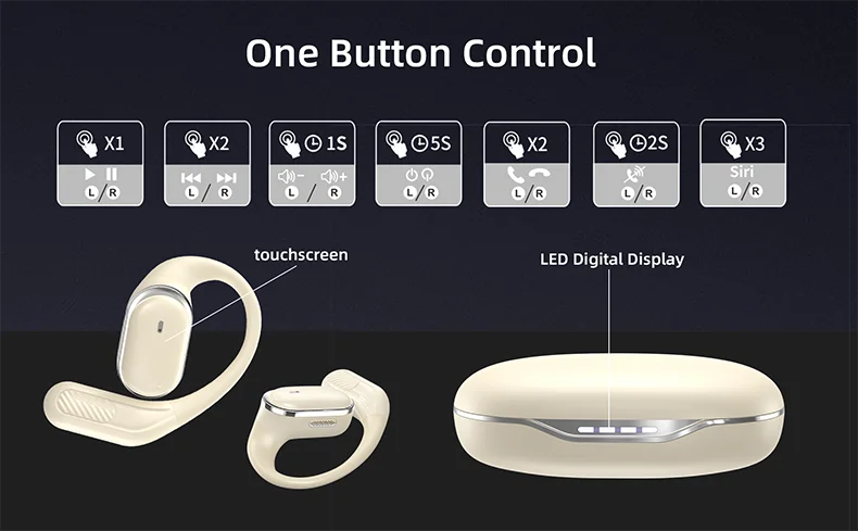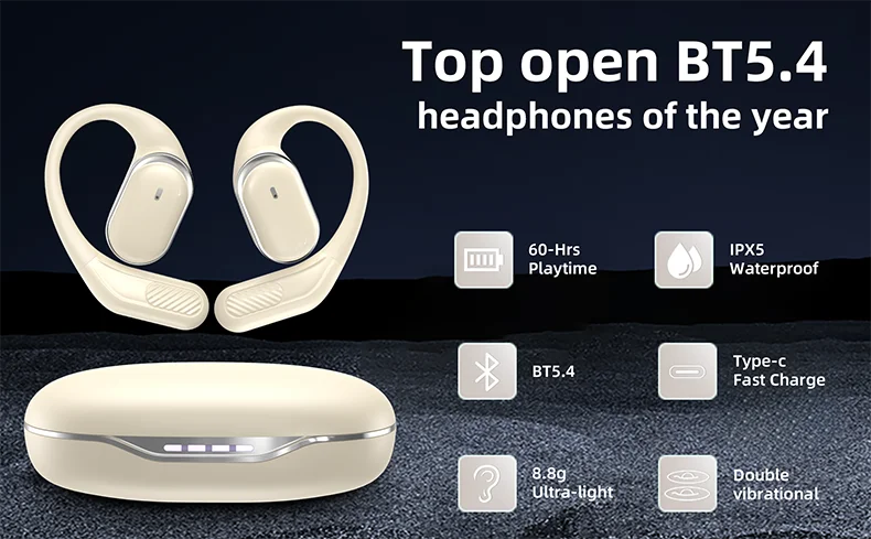 【Comfortable Open-Ear & IPX5 Waterproof】With a skin-friendly silicone ear hook, these open earbuds offer extended comfort, easing ear pressure. The ultra-thin memory alloy hook adjusts to different ear shapes. Ideal for outdoor activities, fitness, or office work, providing a lightweight, secure experience. With IPX5 sweat resistance, they're perfect for intense workouts and outdoor use.