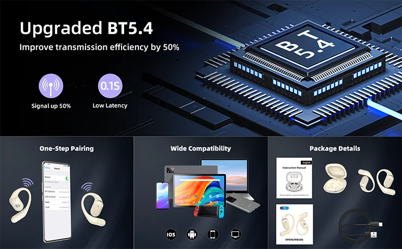 【Advanced Bluetooth 5.4 Connectivity】These Open-Ear Bluetooth Headphones feature seamless pairing with smartphones, providing efficient and quick connections. The outstanding speed and stable audio transmission ensure an excellent wireless audio experience for more enjoyment.