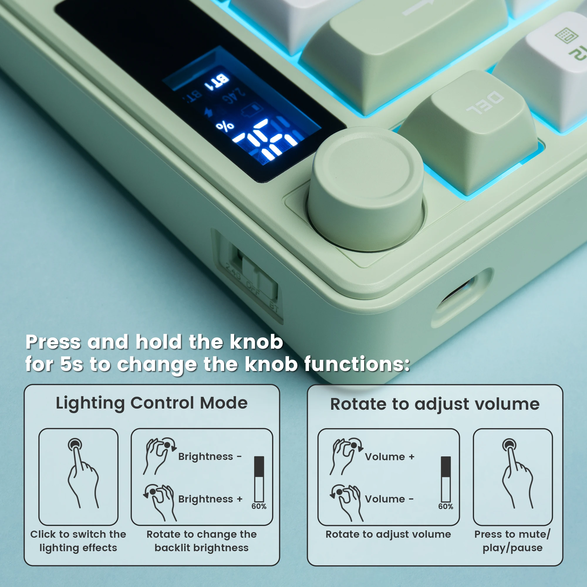 Womier DK75 75% Wireless Membrane Keyboard 3-Mode Bluetooth/2.4G/USB-C RGB Backlit Keyboard with Knob&Screen for PC/Mac Gamer